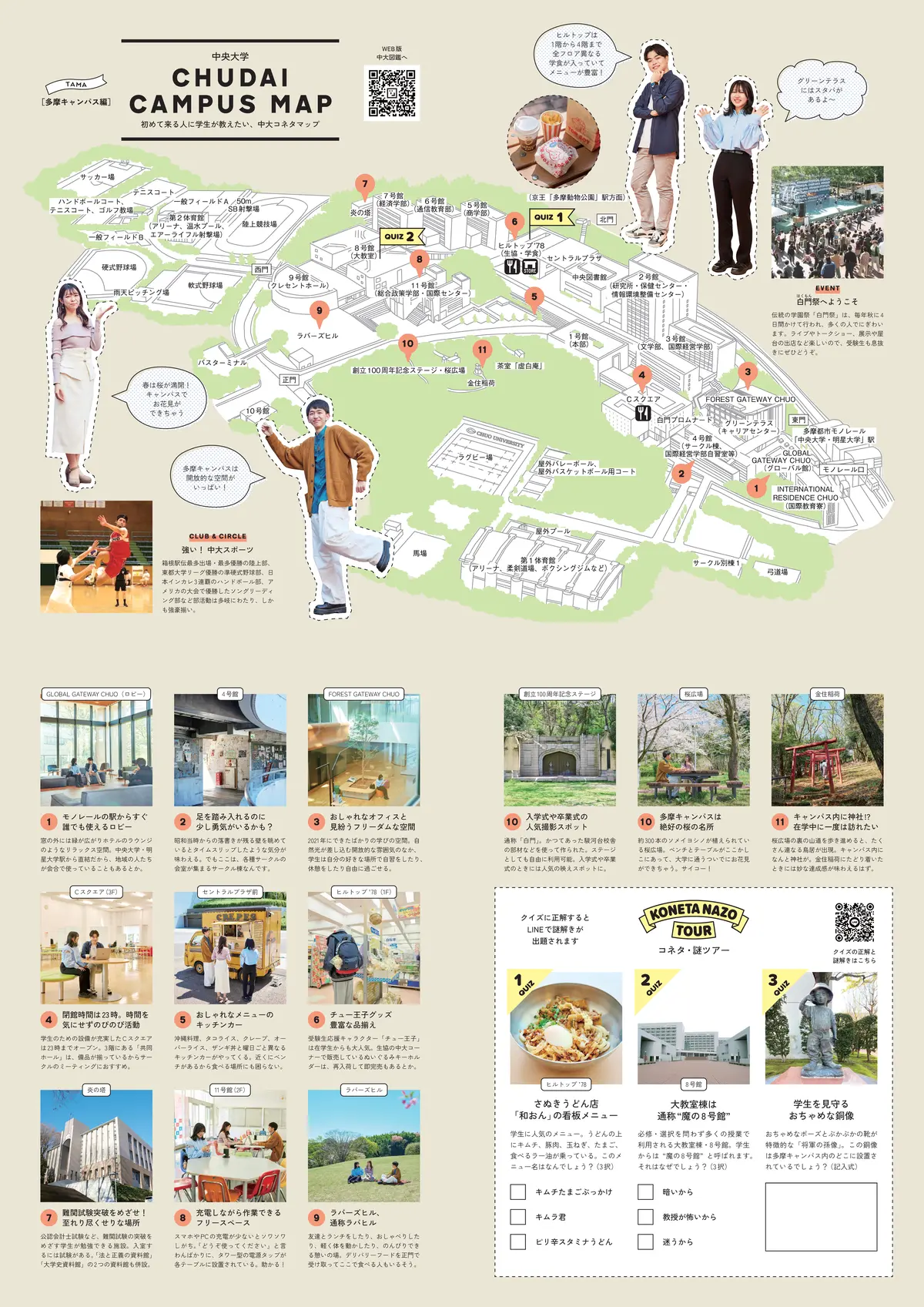📍 中央大学 多摩キャンパスhttps://map.gakuseizukan.jp/maps/gakuseizukan/@35.641564475353945,139.4044738306774,18-17z?nogesturehint=1&hidden=ftb🎓 中央大学〒192-0393 東京都八王子市東中野742-1【アクセス】 多摩モノレール「中央大学・明星大学駅」より徒歩0分 京王動物園線「多摩動物公園駅」より徒歩約10分 京王相模原線「京王多摩センター駅」、小田急多摩線「小田急多摩センター駅」より バス(13番乗り場)を利用し約12分 JR中央線「豊田駅」より バス(4番乗り場)を利用し約15分【コネタマップ 印刷用A3版】→ 詳しく見る(ダウンロード)