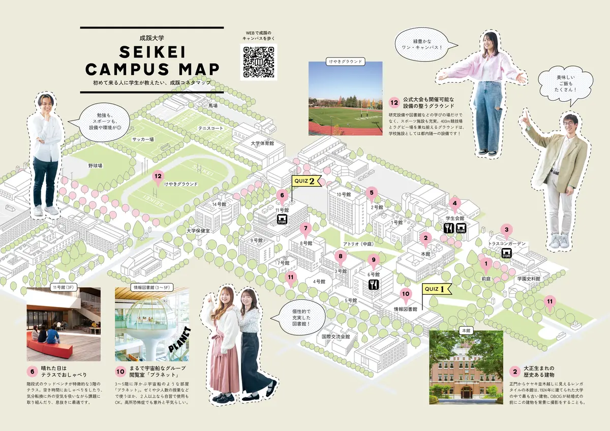 📍 成蹊大学https://map.gakuseizukan.jp/maps/gakuseizukan/@35.71226584917013,139.57330097665672,18-17z?nogesturehint=1&hidden=ftb🎓 成蹊大学〒180-8633 東京都武蔵野市吉祥寺北町3-3-1【アクセス】 JR中央・総武線、京王井の頭線「吉祥寺駅」北口より 徒歩約15分 関東バス(1・2番のりば)を利用し約5分、「成蹊学園前」下車 西武新宿線「西武柳沢駅」南口より バス「吉祥寺駅」行きを利用し約15分、「成蹊学園前」下車【コネタマップ 印刷用A4版(2p)】→ 詳しく見る(ダウンロード)